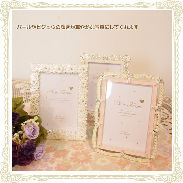 フォトフレーム 写真立て ビジュー おしゃれ かわいい 卓上 フォトスタンド シンプル ナチュラル ウェディングフレーム ビアンカm Kkm3343 21 フォトフレーム フレーム フレーム おしゃれ